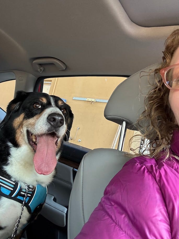 Here’s a shot of Pippin in the backseat of my car, in line at the coffee drive-thru. He’s practicing his smile for the barista so he can beg for a pup-uccino.